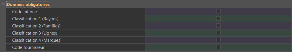 Classification 1 (Rayons) : lorsque cette case est cocher, la saisie d'un rayon est obligatoire.