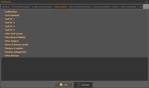 Etiquetage automatique su création produit : si vous cochez cette case, lorsqu'un article est crée, une demande d'impression d'étiquette est automatiquement envoyée à la file d'attente des étiquettes.